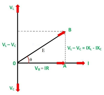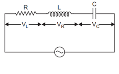 Let us consider, a circuit contains alternating source of emf ‘E’, inductor of inductance ‘L’, capacitor of capacitance ‘C’ and resistor of resistance ‘R’ which are connected in series in the circuit.