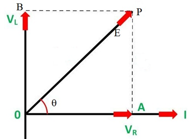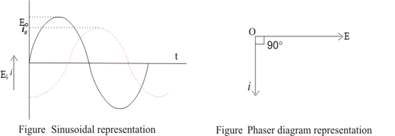 Let us consider, a circuit which contains alternating source of emf (E) and inductor of inductance (L). ‘I’ is the alternating current passing through inductor which is produced by alternating emf in the circuit.