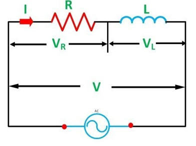 Total impedance of circuit (Z) for inductor dominated is given by,