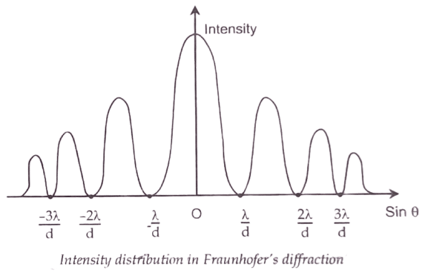 [latex]Or,\ sin\theta_n = \frac{n\lambda}{d}[/latex]  β€¦β€¦β€¦β€¦β€¦β€¦β€¦. (i)