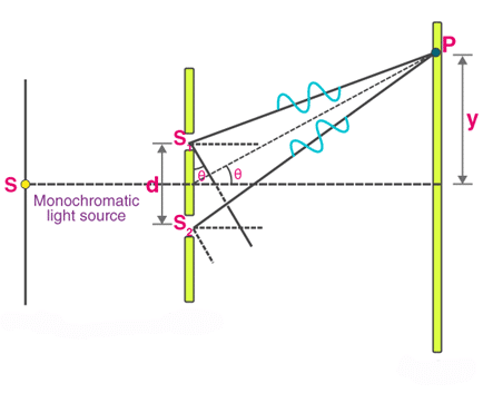 In 1801, Thomas young demonstrated first experiment on the interference of light and proved the wave nature of light. The experimental setup of this experiment consists of two narrow slits separated by a small distance. These two slits A and B are illuminated by a monochromatic (consisting of single color) light source S. A screen is placed at some distance away from the slit.