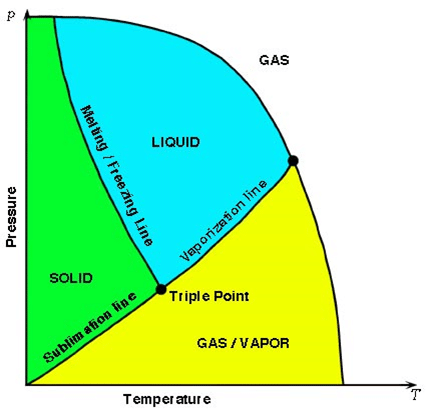 - Sublimation Line: The process by which a solid change directly into the vapour phase without passing through the liquid phase is called sublimation. Figure shows melting, vaporization and sublimation line.