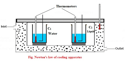 Newton’s law of cooling can be used to determine the specific heat capacity of the liquid by the following procedure: