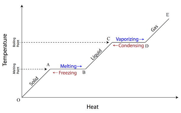 We know that, the matter exists in three states – solid, liquid & gas. As temperature increases, solid changes to liquid & liquid changes to gas. The temperature at which the matter changes its state from solid to liquid is called melting point. As the liquid is further heated, it changes into vapor state. The temperature at which the matter changes its state from liquid to gas is called boiling point.