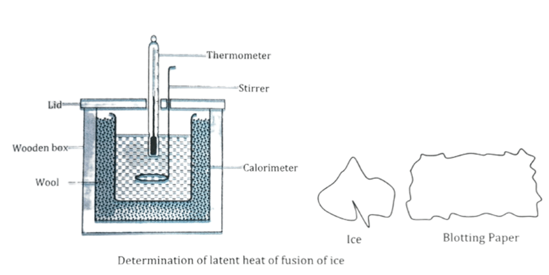 - Some ice is dropped into the calorimeter after making them dry with the help of blotting paper.