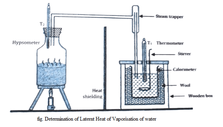 Also, the temperature of water is noted. When the temperature of solid becomes steady, the calorimeter is carried below the hole of steam chamber & the ball is dropped inside the calorimeter from the chamber. Then, by covering with lid, the calorimeter is returned back. By stirring the mixture, constant temperature is noted.