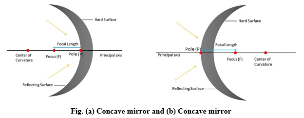 If the outer surface of the part of the sphere is silvered and inner surface becomes reflecting, such mirror is called concave mirror. If the inner surface of the part of the sphere is silvered and outer surface becomes reflecting, such mirror is called the concave mirror.