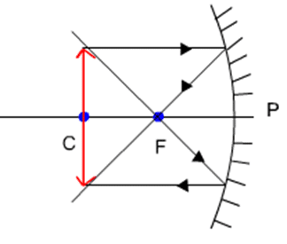 So, CF = BF. Now, if the aperture of the mirror is small, then, B and P are very close. So, FP = FB = CF. Thus,