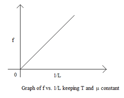 A graph is plotted between f and 1/l, a straight line is obtained passing through origin as shown below. This verifies f β 1/l.