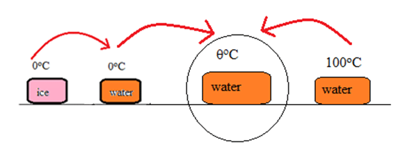 Since, Q2 > Q1, all ice melts, and the resulting temperature rises to [latex]\theta^oC[/latex]